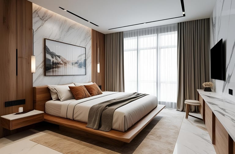 Quality Materials: Natural wood, marble, metallic embellishments, and luxurious materials such as velvet or linen.