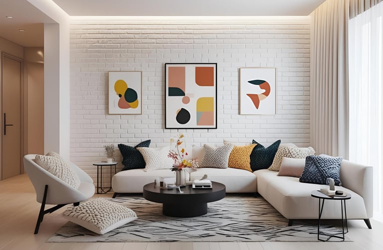 Colour Palettes: Neutrals with bold highlights or rich tones that offer personality.