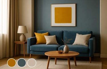 When it comes to color combinations for house interiors, few palettes feel as effortlessly stylish and timeless as Mustard, Slate Blue, and Beige. This trio combines the warmth of yellow tones, the calm of blue shades, and the neutrality of beige, resulting in a balanced and cozy interior that feels both modern and welcoming.