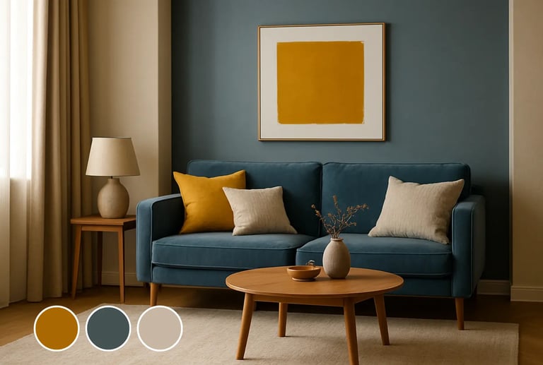 7. Mustard + Slate Blue + Beige: A Perfect Blend of Warmth and Elegance