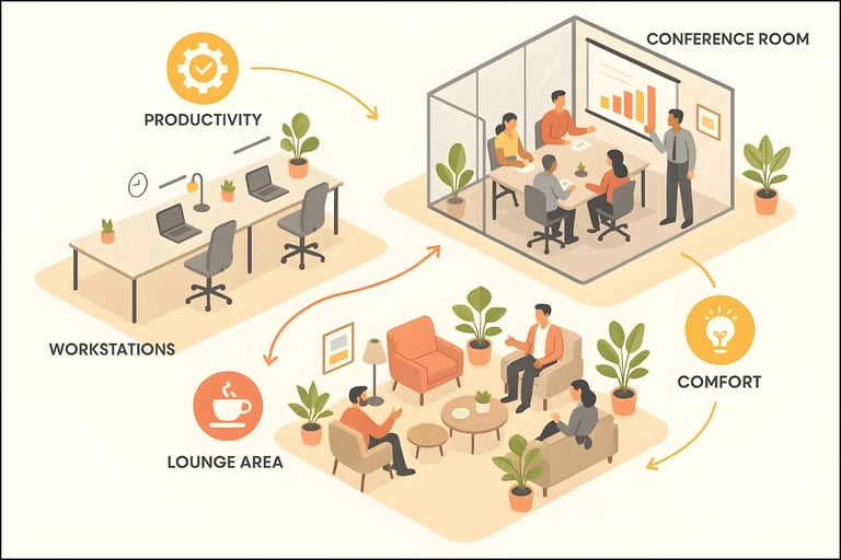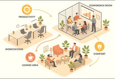 If you operate a business or office space in Sushant Lok, having an appealing and efficient interior design can significantly improve your brand image and employee productivity. We offer business interior design services that integrate functionality, aesthetics, and brand identification.