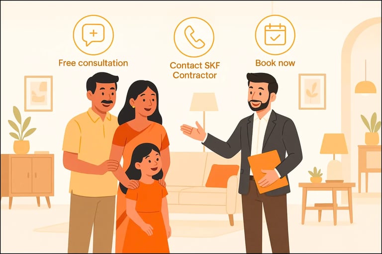 SKF Contractor offers expert designers, end-to-end services, transparent pricing, premium materials, timely delivery, and post-project support to create modern, elegant, and personalized interiors.