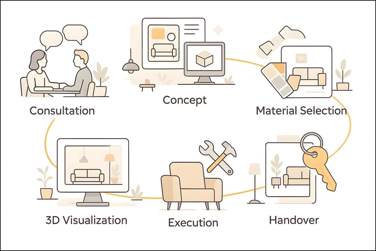 Consultation & Requirement Analysis – We begin by analyzing your requirements, stylistic preferences, and budget.