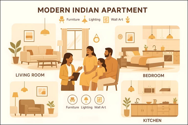 Costs vary based on project size and complexity. Basic packages start from ₹80,000, while full home interiors can range from ₹5 lakh to ₹20 lakh.